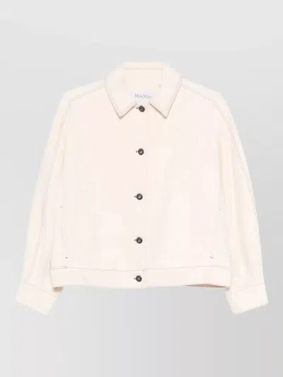 Boxy Denim Jacket Contrast Seams Buttons Collar In White