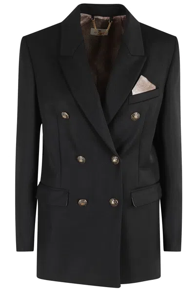 Single-breasted Wool Blend Crepe Jacket With Sequins In Black
