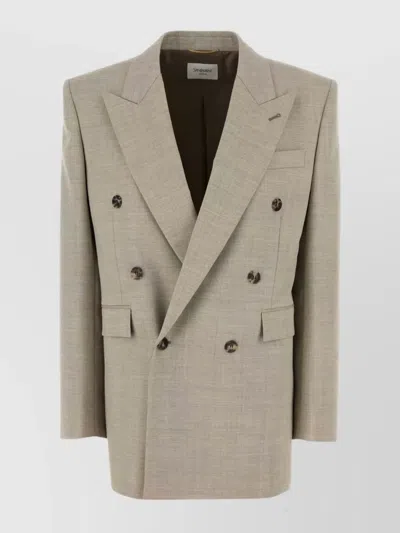Double-breasted Wool Blazer Peak Lapels In Neutral