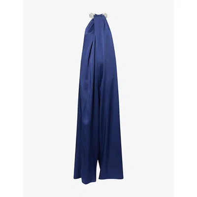 Womens Navy Halterneck Satin Jumpsuit In Blue