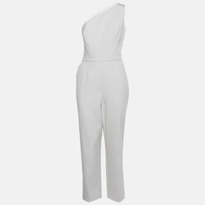 Pre-owned White Tulle Trim Wool One Shoulder Jumpsuit L