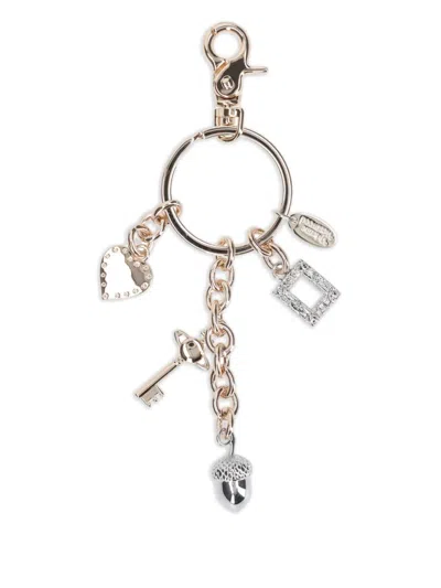 Heart And Key Charms Mixed Metal Keyring In Brown