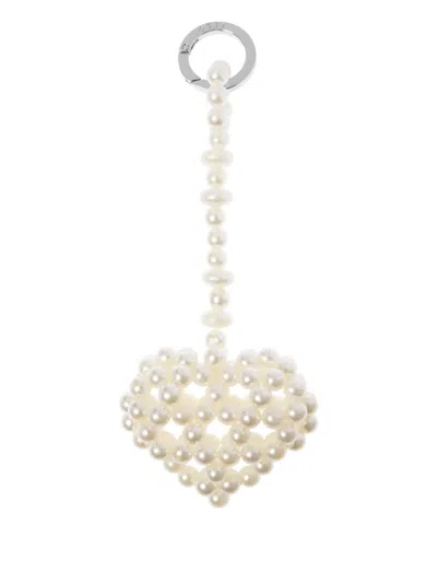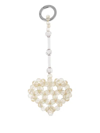 Heart-shaped Beaded Keyring In Neutral