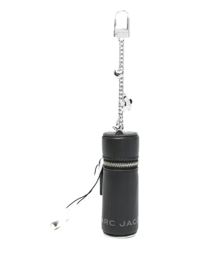 Leather Key Ring Featuring Charm Pendant In Black