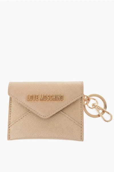 Love Saffiano Faux Leather Envelope Keyring In Gold