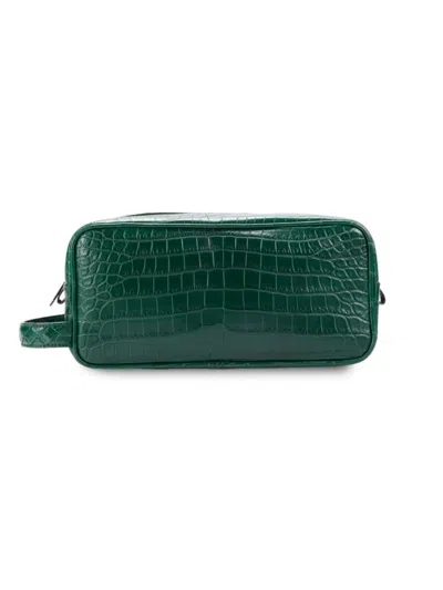 Kids' Croc-embossed Leather Zip Shaving Pouch In Grey