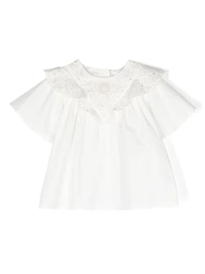 Babies' Embroidered-edge Ruched-detail Blouse In White