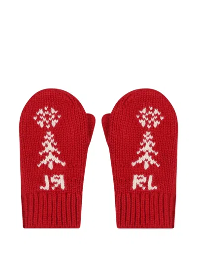 Kids' Coral Logo-patch Wool Blend Glove In Neutral