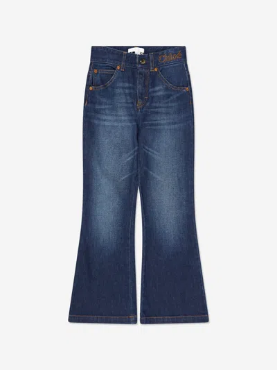 Kids' Girls Embroidered Logo Denim Jeans In Blue