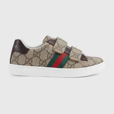 Blue Sneakers For Kids With All-over Gg Logo In Brown