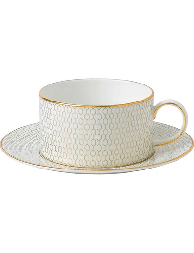 Gio Gold China Teacup And Saucer Set In White