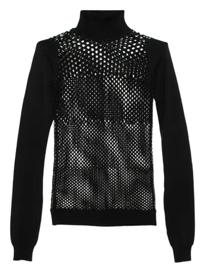Pre-owned Black/white Polka Dot Jacquard Knit Wool Sweater Xs