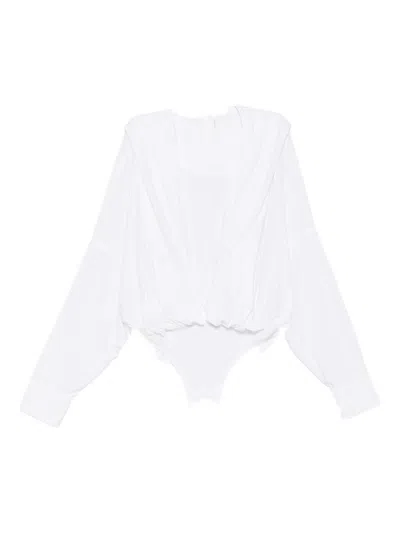 Collared Bodysuit With Cuffed Long Sleeves In Optical White