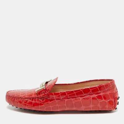Pre-owned Red Croc Embossed Patent Leather Double T Loafers Size 41