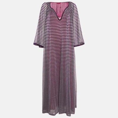 Pre-owned Purple Stripe Lurex Silk Knit Maxi Dress M