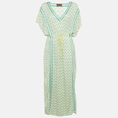 Pre-owned Yellow /green Knit Side Slit Detail Maxi Dress S