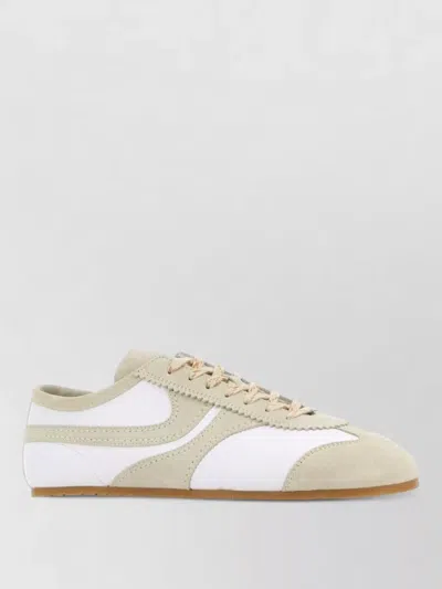 Leather Sneakers Low Profile Suede Panels Rubber Sole In Multi