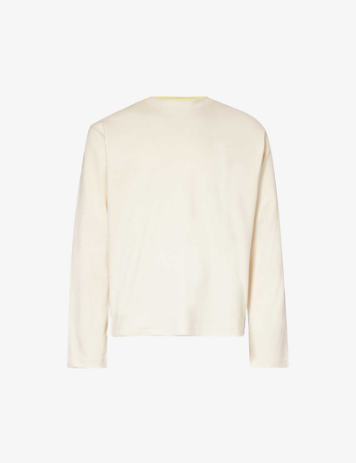 Mens Chalk Crewneck Brand-embroidered Cotton-jersey T-shirt