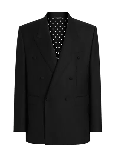 Sicilian Double-breasted Wool Jacket In Black