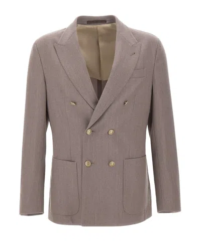 Brown Coated Blazer In 606 Khaki