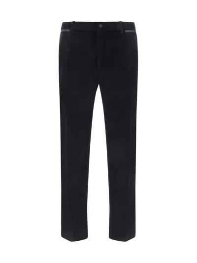 Velvet Cotton Trousers With Side Stripe Detail In Black
