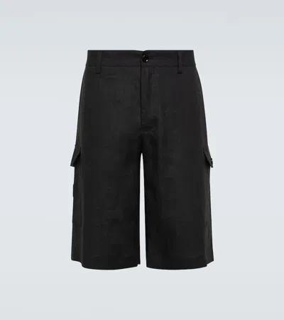 Men Black Bermuda Shorts With Logo Patch In Linen Man