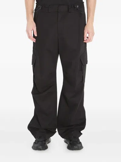 Adjustable Waistband Cargo Pants With Drawstring In Black