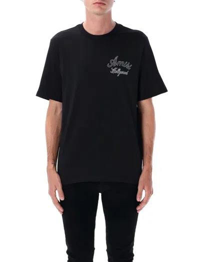 Hollywood Crewneck T-shirt Embroidered Design In Black