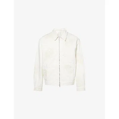 Mens Off White Embroidered Relaxed-fit Denim Jacket