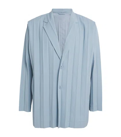 Slim-fit Blazer In Micro-patterned Cotton In Blue