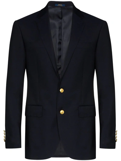 Stretch Virgin Wool Blazer With Frontal Logo Patch In Blue