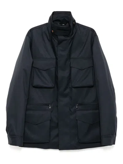 Men Technical Fabric Safari Jacket In Blue