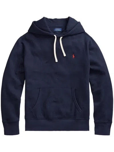 Classic Hoodie Sweater With Adjustable Drawstring And Embroidered Logo In Blue