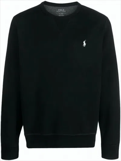 Black Crewneck Sweater With Embroidered Logo And Ribbed Hem