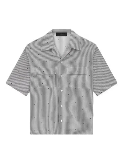 Pinstripe Camp-collar Shirt In Gray