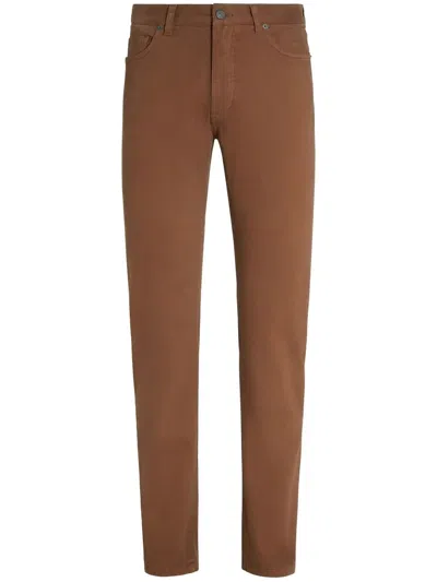 Stretch Gabardine Denim Jeans In Brown