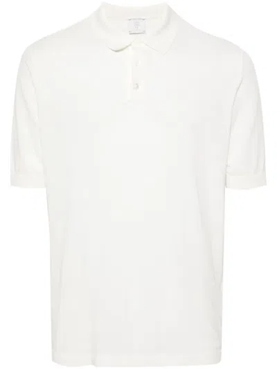 Classic White Polo Shirt With Textured Fabric In Neutrals