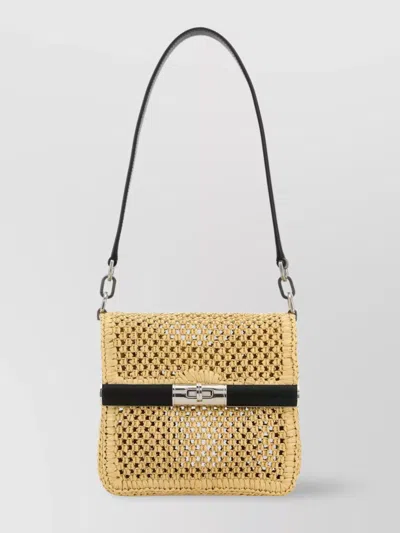 Rectangular Woven Top Handle Shoulder Bag In Beige O Tan