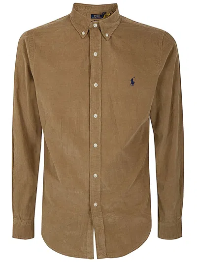 Ralph Lauren Long Sleeve Corduroy Shirt Beige In Brown