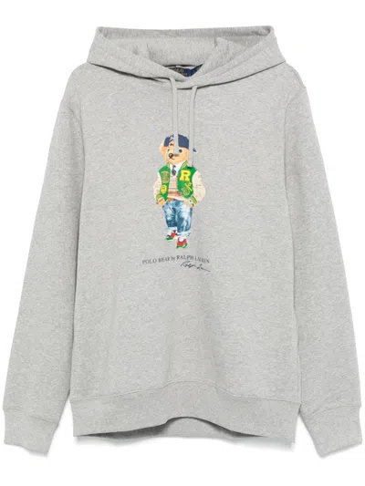 Casual Hoodie With Playful Bear Graphic And Drawstring Hood In Gray