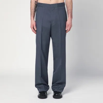 Wide Aviator Blue Mohair And Silk Trousers In Aviation