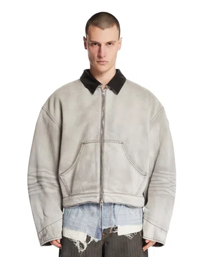 Leather-trimmed Denim Jacket In Gray