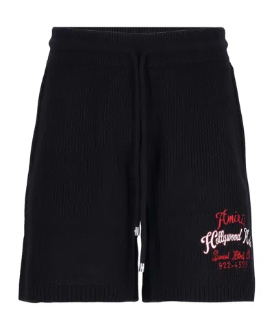 Logo And Stripe-print Vanity Silk Bermuda Shorts In Black