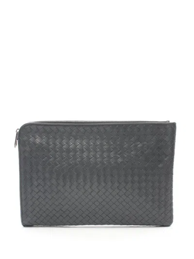Pre-owned 2000s Intrecciato Leather Clutch Bag In Grey