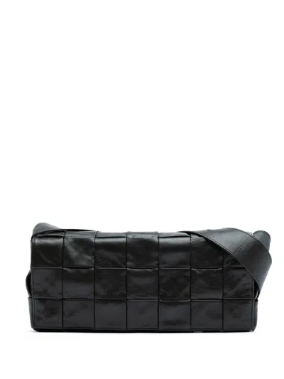 Pre-owned 2012-2025 Stretch Paper Calfskin Intrecciato Cassette Crossbody Bag In Black