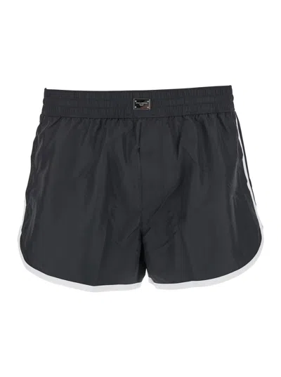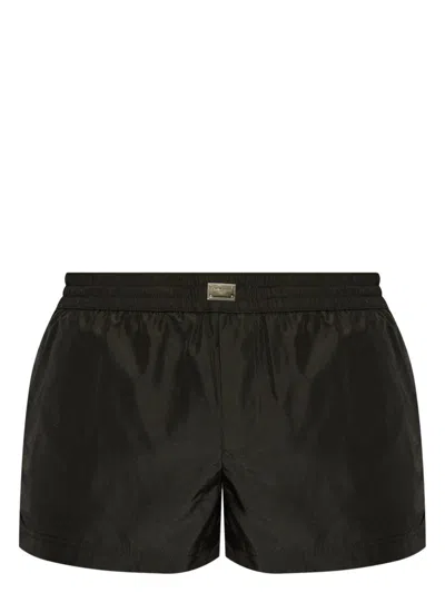 Logo Patch Swim Shorts With Elastic Waist In Black