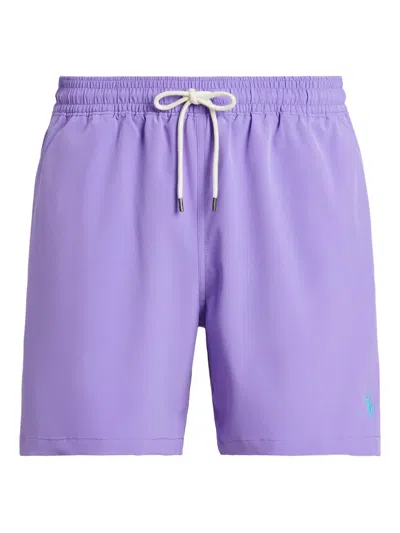 Nylon Swim Trunk With Logo Embroidery In Purple