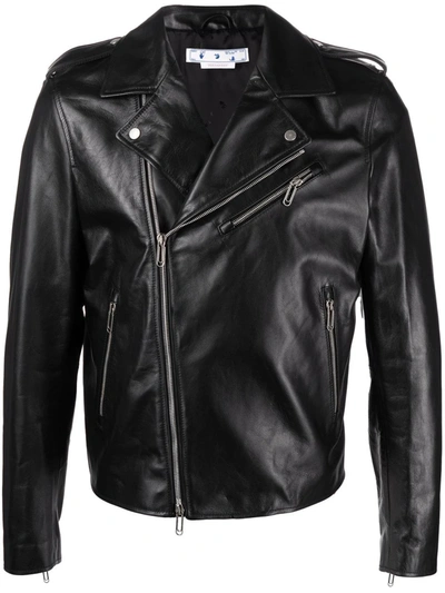 Black Vegetable Leather Biker Jacket Washed Effect In Multi