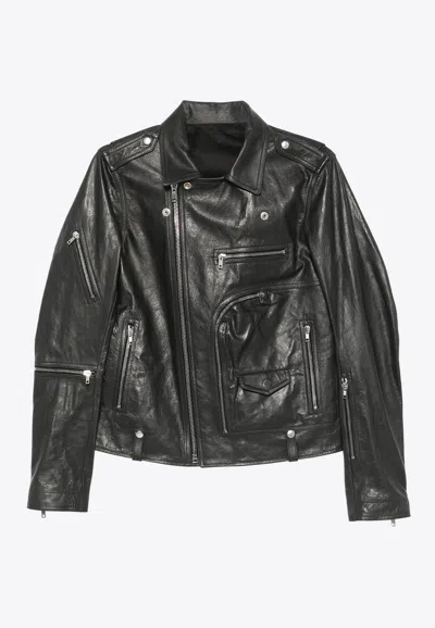 Leather Zip-up Biker Jacket In Black