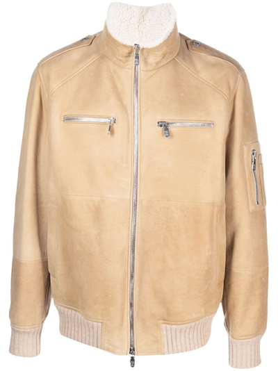 Tan Shearling Lamb Biker Jacket Shirt Buckle Collar In Brown